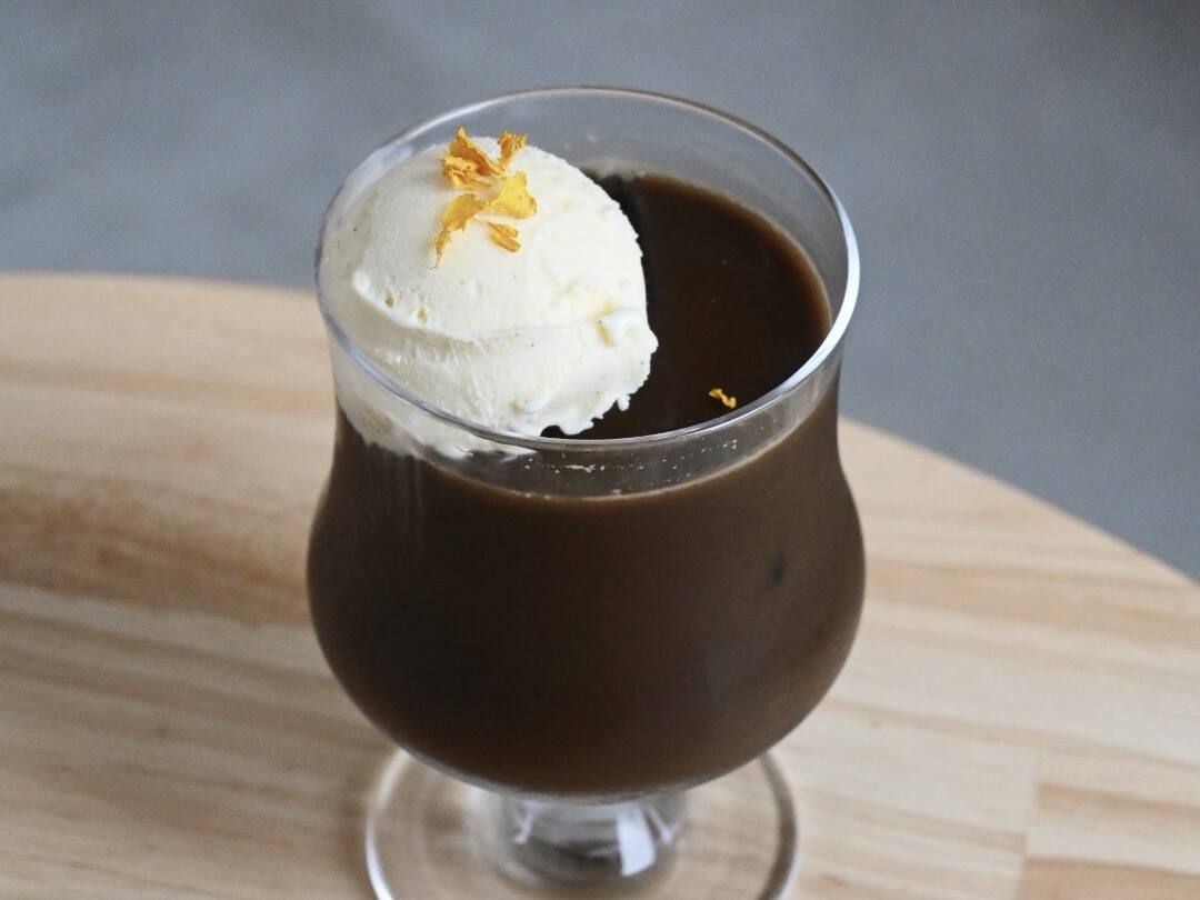 当店のハウスブレンド「トーンブレンド」を水出しでじっくり抽出したコールドブリューで作っているビターなコーヒーフロートです。中煎りのアメリカーノでも試してみましたが、深煎りの方がアイスとの相性がよく、トーンブレンドで作ることにしたそう。